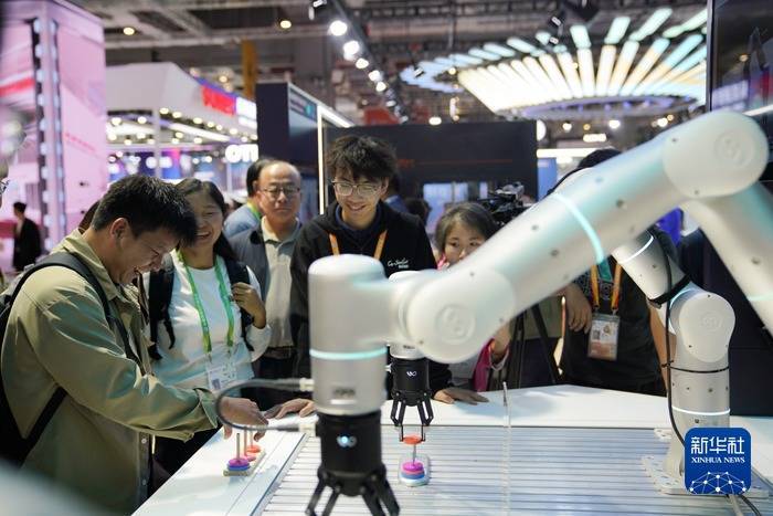 11月6日,参观者在国家会展中心(上海)技术装备展区西门子展台与AI进行游戏互动。新华社记者 樊雨晴 摄在包括西门子在内的多家外资企业看来,“进博会就像是一座不断运转的创新动力厂,它将全球创新要素汇聚到一起,并持续为世界经济注入新的增长动能。”