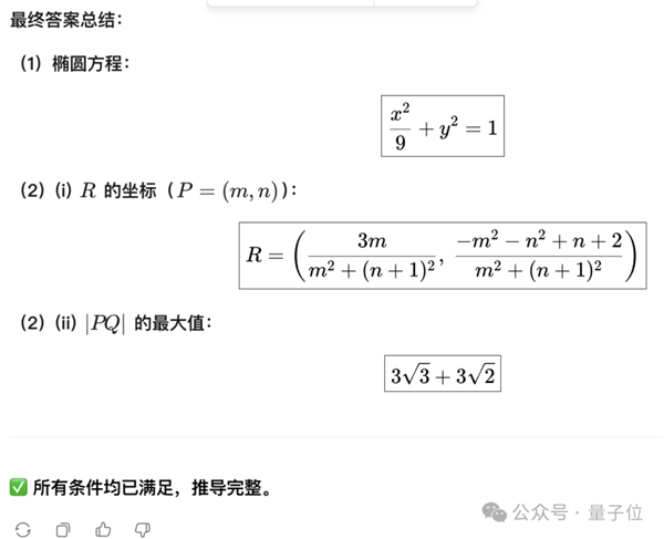 利用该结论,LongCat对最大距离进行了拆解,并通过代入等方法,最终计算出了正确结果。