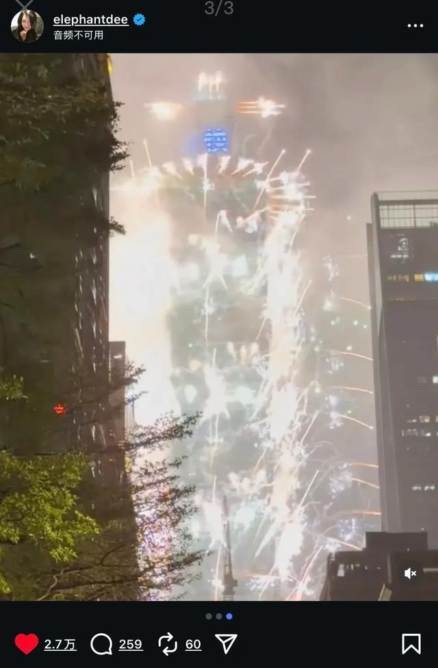 其实,在同一个时刻,汪小菲和孩子们也在台北看101的烟花秀。